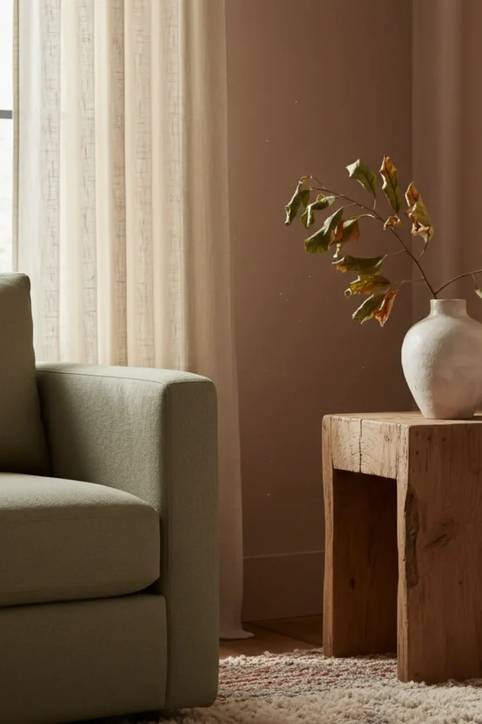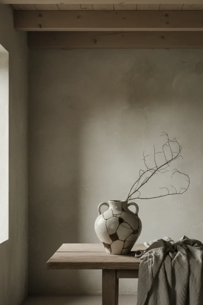 Skip elaborate floral arrangements. Instead, choose something humble and alive: a twig with uneven leaves, a pot of moss, or a rough-cut plant. Their imperfection reminds us of the seasons, and their presence keeps the room feeling alive.