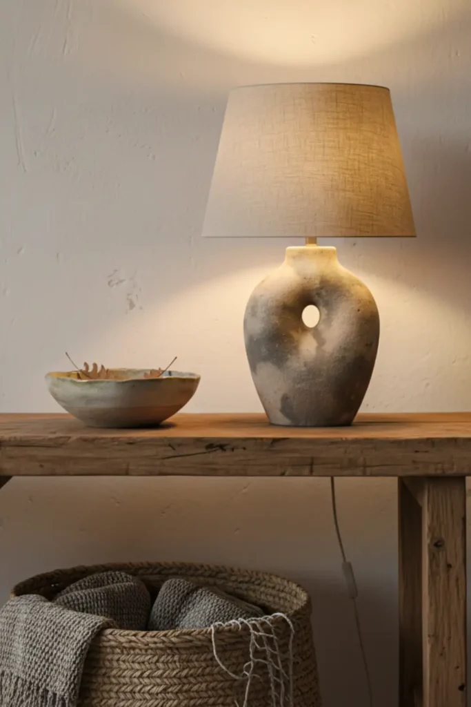 Handmade objects are central to Wabi Sabi style. They carry human warmth — the small imperfections that make them unique. A hand-thrown ceramic mug, a woven basket, or a sculpted clay lamp all tell stories of care and creation.