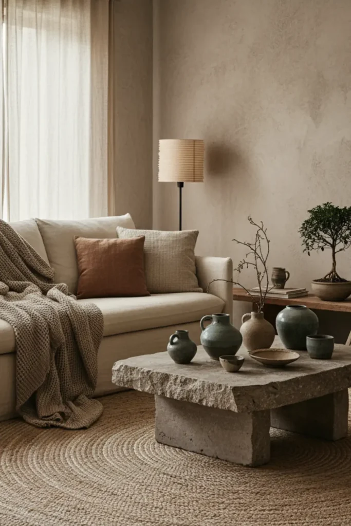 If your home feels too polished or predictable, this design philosophy is the perfect refresh. Below are ten inspiring ways to bring Wabi Sabi warmth and meaning into your living room, no matter its size or style.