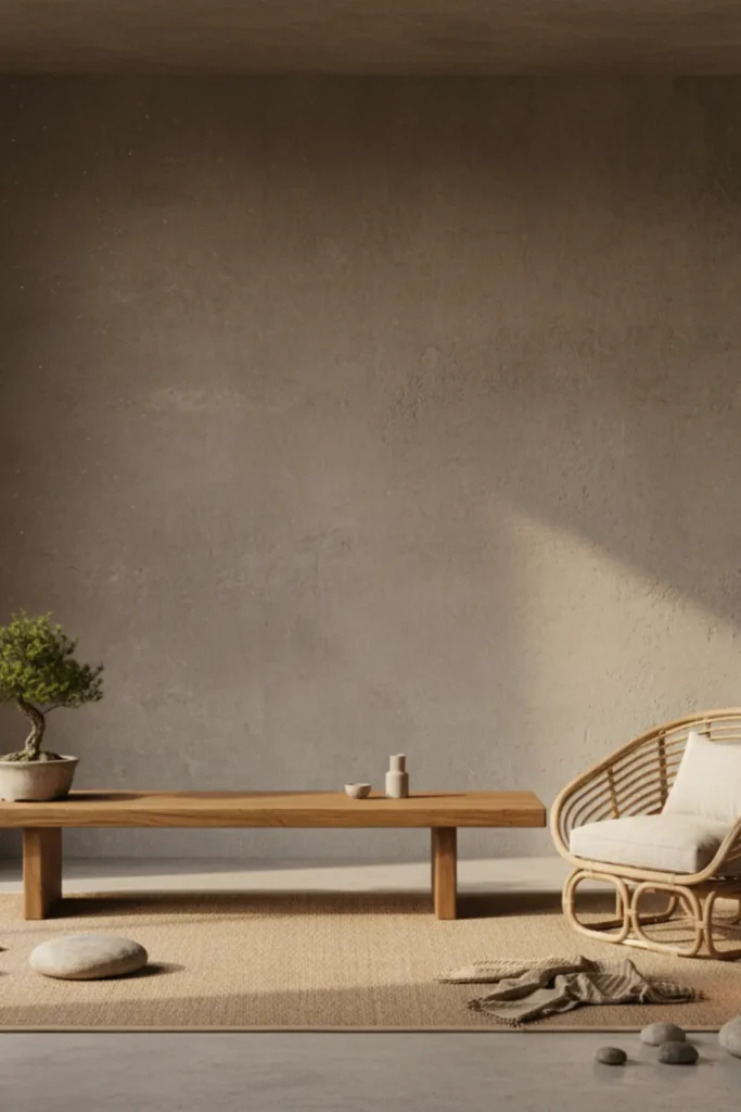 Wabi Sabi design starts with materials that feel alive. Think weathered wood, rough clay, woven fibers, and unpolished stone. These surfaces carry quiet depth — they shift with light, grow softer with touch, and tell stories as they age.